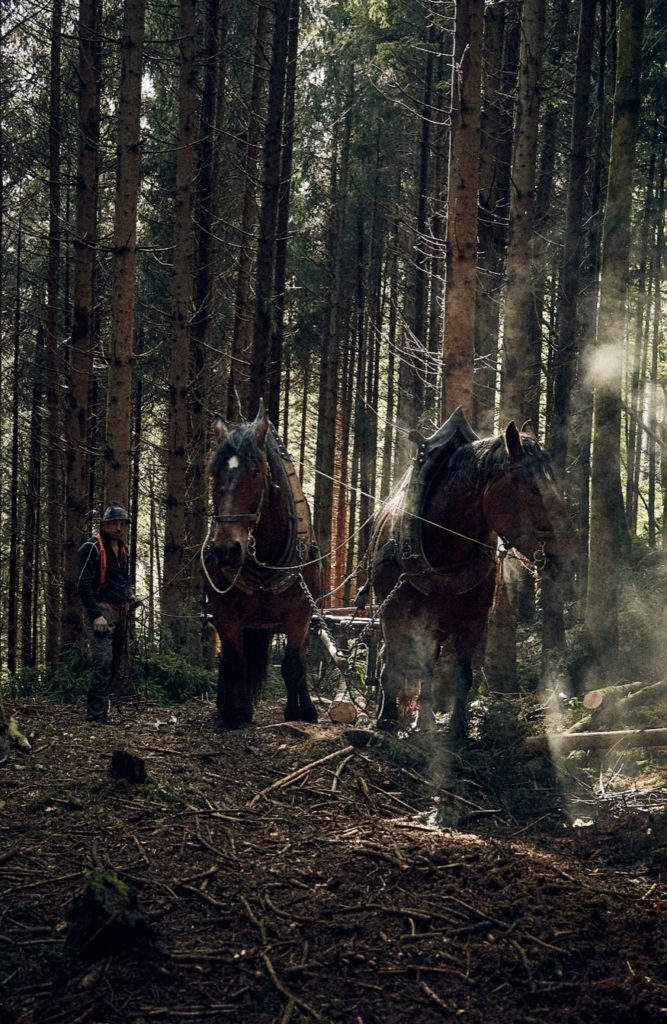 Diese Tätigkeit wird heute fast ausschließlich durch den Einsatz von Forstmaschinen erledigt. Doch der Einsatz ist teuer – und er hinterlässt deutlich sichtbare Spuren und Schäden im Wald. Das Holzrücken mit dem Pferd gewinnt deshalb heute wieder mehr an Bedeutung, da es nachhaltig, wirtschaftlich und umweltschonend ist – und eben eine Sache für Liebhaber wie Bernhard.