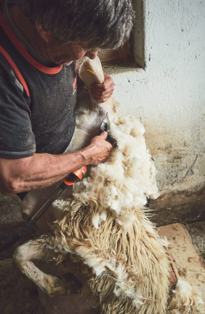Das Bergschaf wird im Frühjahr und Herbst geschoren. Aus der Schafwolle haben die Bergbauern früher einen Teil ihrer Kleidung selbst hergestellt. Dabei sind viele Arbeitsschritte notwendig: Nach dem Scheren muss die Rohwolle gewaschen und gekämmt werden. Danach spinnt man sie zu Wollfäden, wickelt sie auf und kann daraus Jacken, Strümpfe, Socken, Handschuhe oder Mützen stricken. Kleidung aus Schafwolle kann aber ziemlich kratzig sein.
